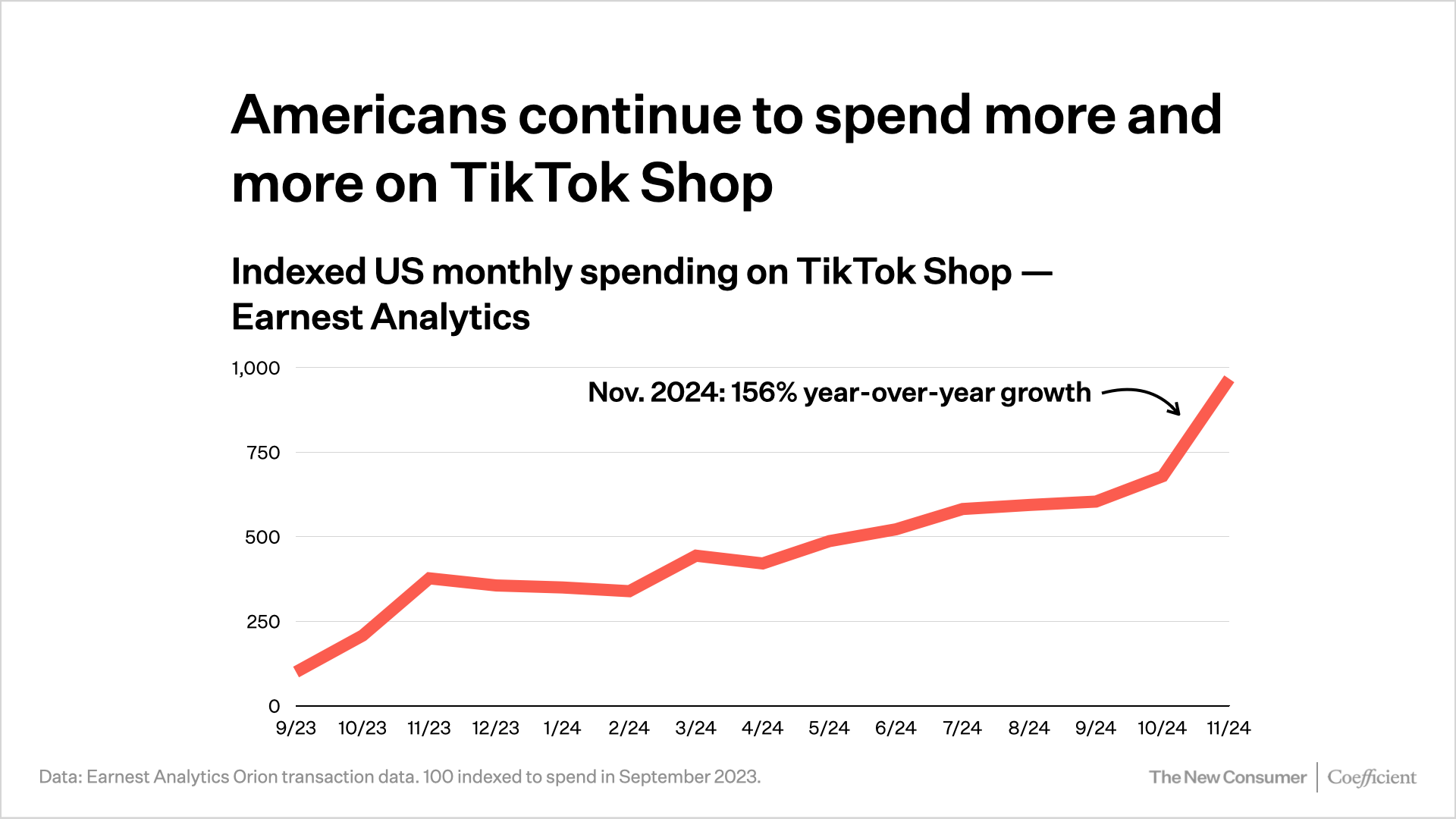 For a sense: After launching in September 2023, TikTok Shop is now bigger in the US than Sephora, Shein, and old-school home shopping networks QVC & HSN, according to Q3 consumer credit and debit card spending data supplied by Earnest Analytics.
